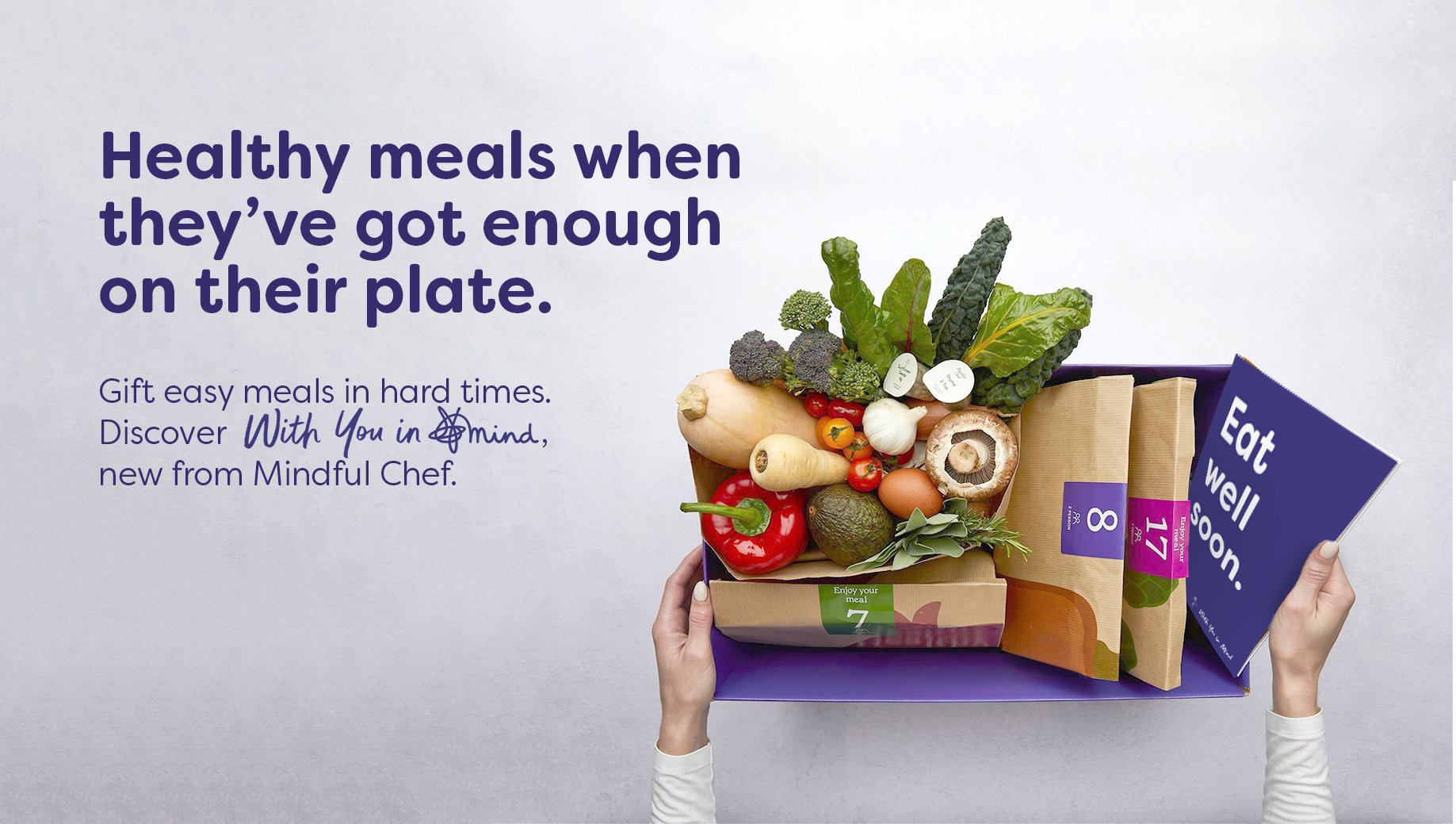 ‘With You in Mind’ would allow people to gift a week or month of Mindful Chef boxes to someone who needs it most. No shopping, no chopping. Just simple, nutritious meals that take the pressure off. And no Tupperware to return.